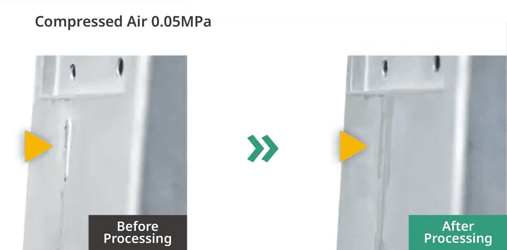 공기압을 조절하는 것만으로 버의 크기와 재질에 따라 절삭 조건을 조절할 수 있습니다. 표면 버의 경우에도 모재의 손상없이 안정적인 버 제거를 보장합니다.