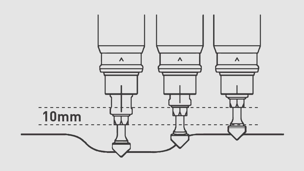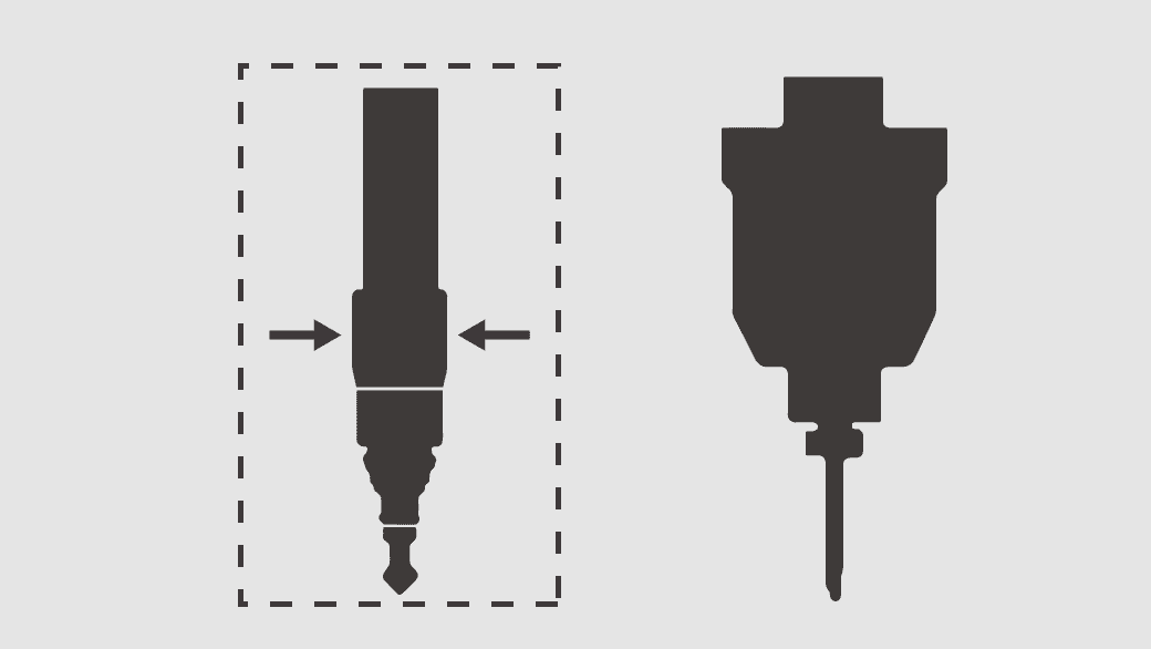 BRQ-EZ01은 공구를 고정하는 팁 부분(플로터)에 원터치 메커니즘이 있습니다.